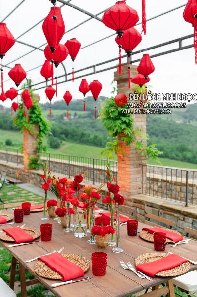 Việc sử dụng lồng đèn đỏ trang trí tiệc ngoài trời là một cách tuyệt vời để tạo dựng không gian ấm cúng, huyền bí và đầy cảm xúc. Từ việc lựa chọn loại đèn phù hợp đến cách bố trí và phối hợp màu sắc, tất cả đều góp phần làm nên một buổi tiệc không chỉ đẹp mắt mà còn giàu ý nghĩa văn hóa, Trong các dịp lễ lớn, đèn lồng đỏ thường xuất hiện như một phần không thể thiếu, mang ý nghĩa về may mắn, hạnh phúc và thành công.