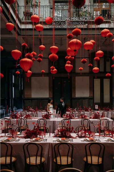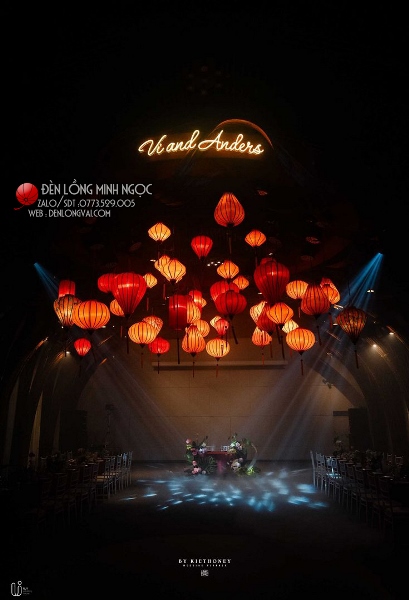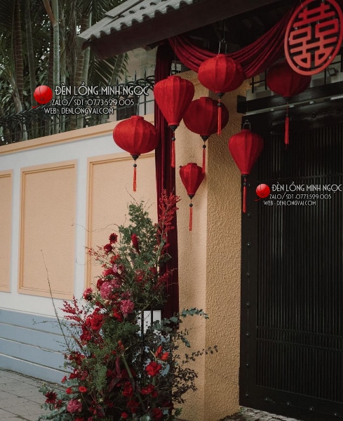 Lồng đèn đỏ truyền thống trang trí đám cưới với nhiều kiểu dáng để kết hợp kèm màu đỏ truyền thống báo hỷ may mắn, đèn lồng đỏ Hội An luôn là sự lựa chọn hàng đầu trong trang trí lễ hỏi, tiệc cưới.