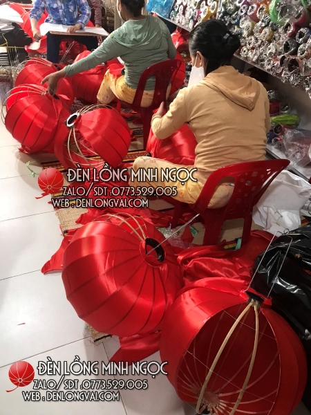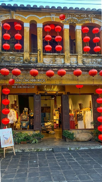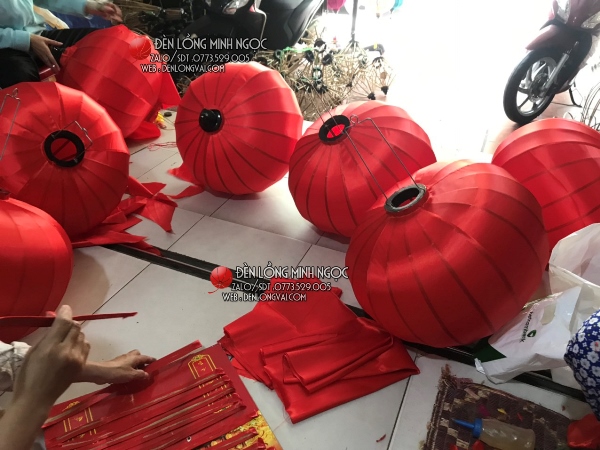 Lồng đèn phi đỏ ngoài trời trang trí quán, với gu màu đỏ truyền thống kết hợp chất liệu vải phi ngoài trời bền đẹp, mang đến một không gian hoài cổ nhưng cũng không kém phần thu hút và độc đáo. Đèn lồng Hội An luôn có nhiều kiểu dáng và chất liệu vải cũng như màu sắc khác nhau, đáp ứng mọi nhu cầu trang trí của quý khách hàng.