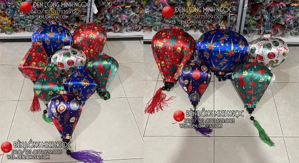 Mẫu lồng đèn Hội An trang trí giáng sinh, với chiếc lồng đèn Hội An xinh xắn với nhiều kiểu dáng được vẽ hoặc in lên các họa tiết về giáng sinh, Những chiếc lồng đèn được thiết kế với nhiều hình ảnh đặc trưng của Noel như cây thông Noel, ông già Noel, tuần lộc, người tuyết,… mang đến cho bạn cảm giác vui tươi và tràn đầy không khí noel. Bạn có thể trang trí đèn lồng ở nhiều vị trí khác nhau như cửa ra vào, ban công, phòng khách, hoặc tạo hình cây thông noel… để tạo điểm nhấn ấn tượng cho không gian của mình.